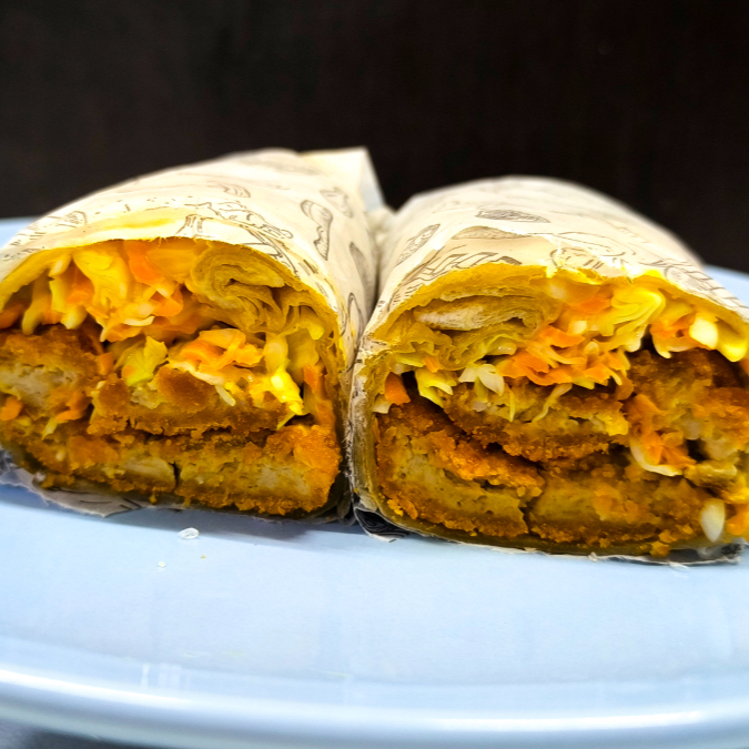 Burrito de 300g. Relleno de pollo crujiente, col blanca y zanahoria fresca, bañados en una mezcla de aderezo ranch y un toque de mostaza. Acompañado de papas a la francesa individuales y té helado de ½ litro. Jalapeños y salsa aparte.