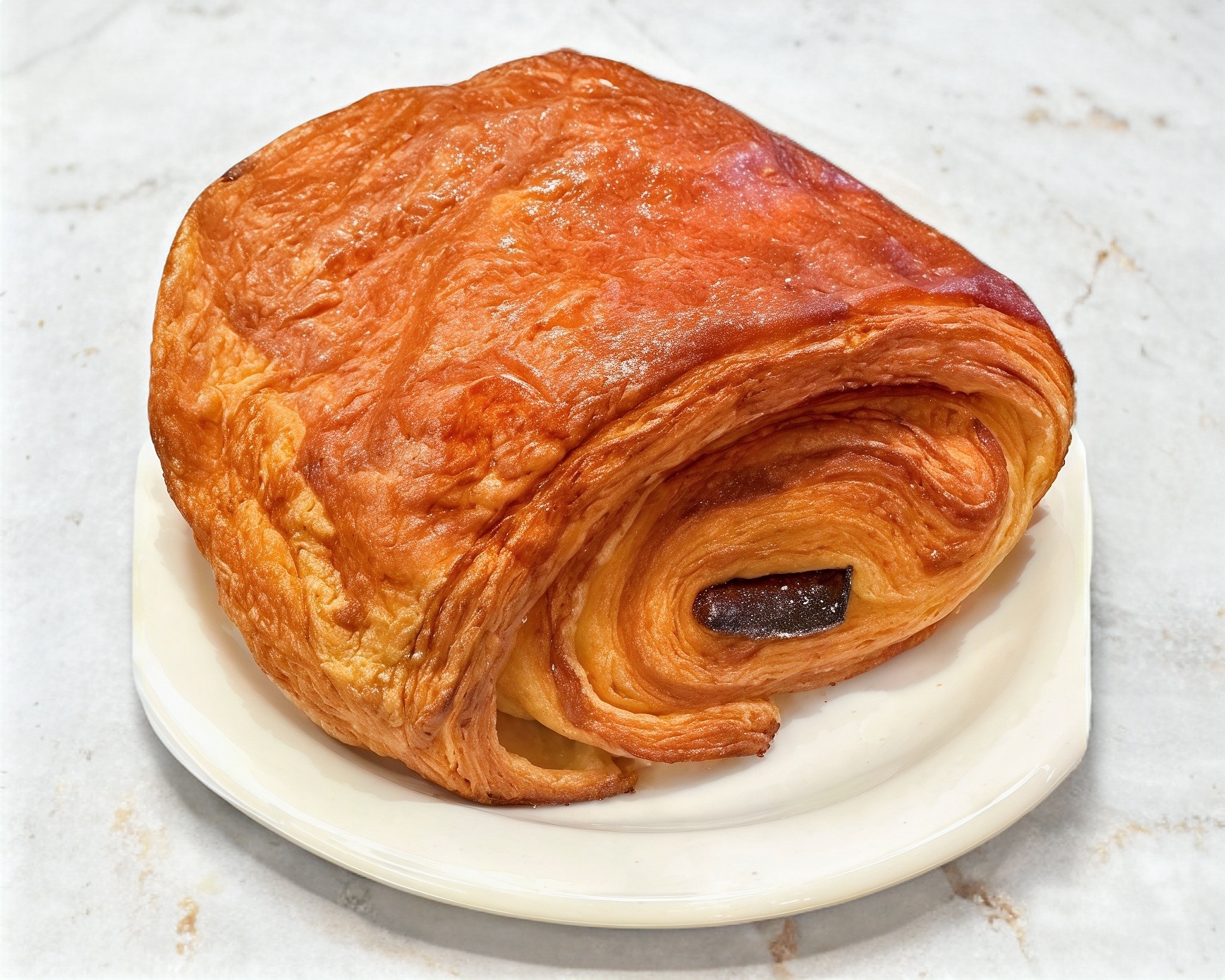 Pan de mantequilla con relleno de chocolate, y cubierto de delicadas tiras de chocolate