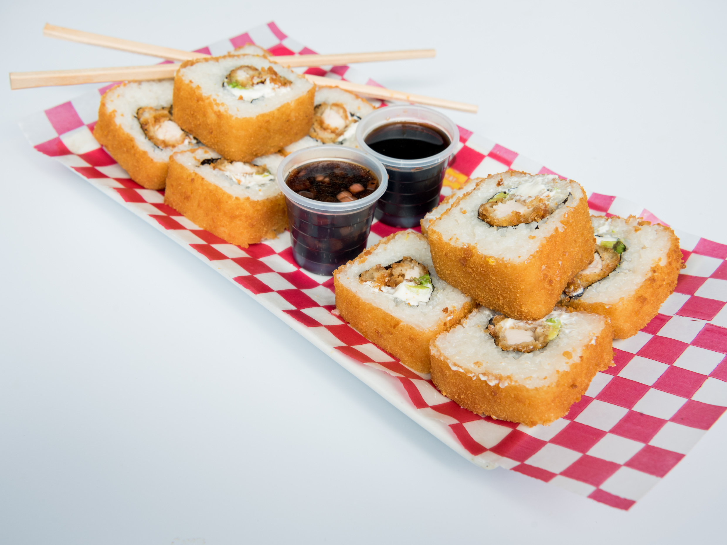 PD: Alga, Phildelphia, Camarón Empanizado, Aguacate. PF: Empanizado