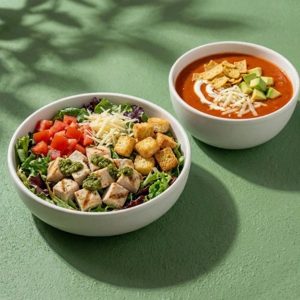 Combo con sopa y ensalada a elección, incluye aderezo a tu gusto.