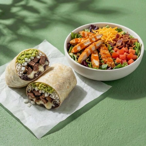 Wrap y ensalada a elección(incluye aderezo a elección).