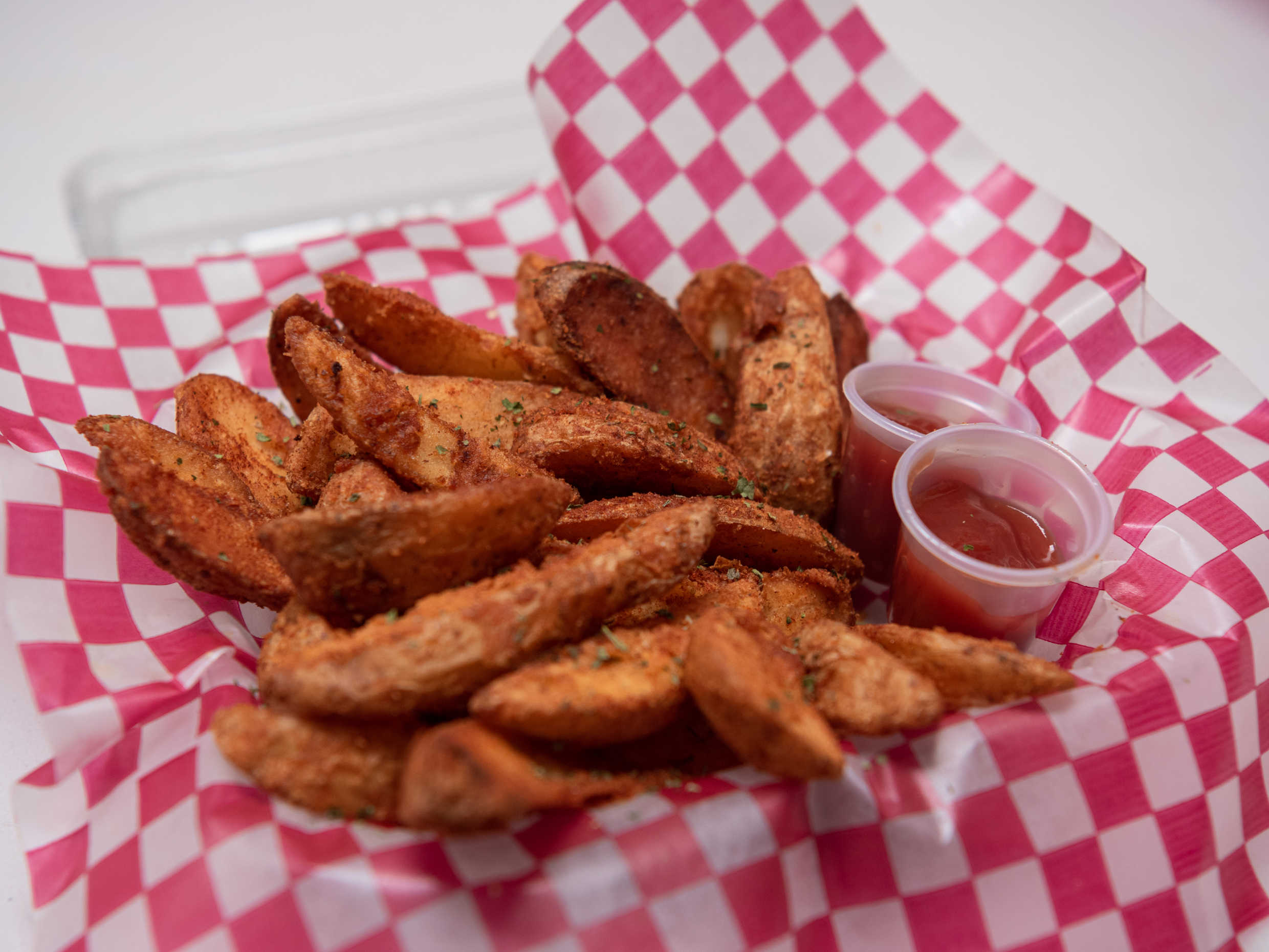 Deliciosas Papas Gajo, crujientes y sazonadas con el sabor de la casa. Acompañadas de delicioso Queso Cheddar.