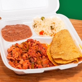 Guiso a elegir, guarnición de frijol, arroz y salsas.