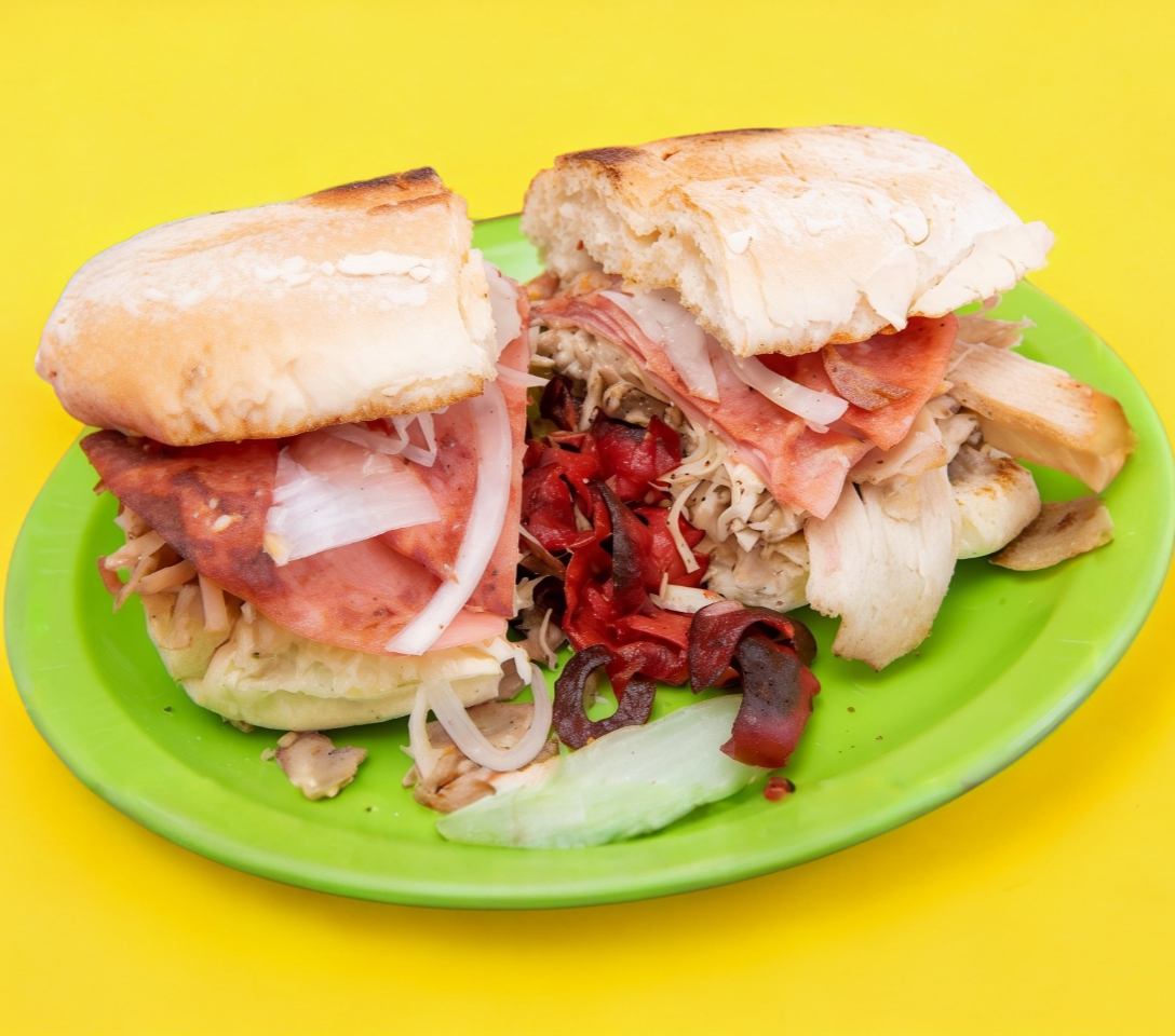 Jamón, queso, pierna, pavo y chorizo, son los 5 ingredientes que acompañan esta delicia.
