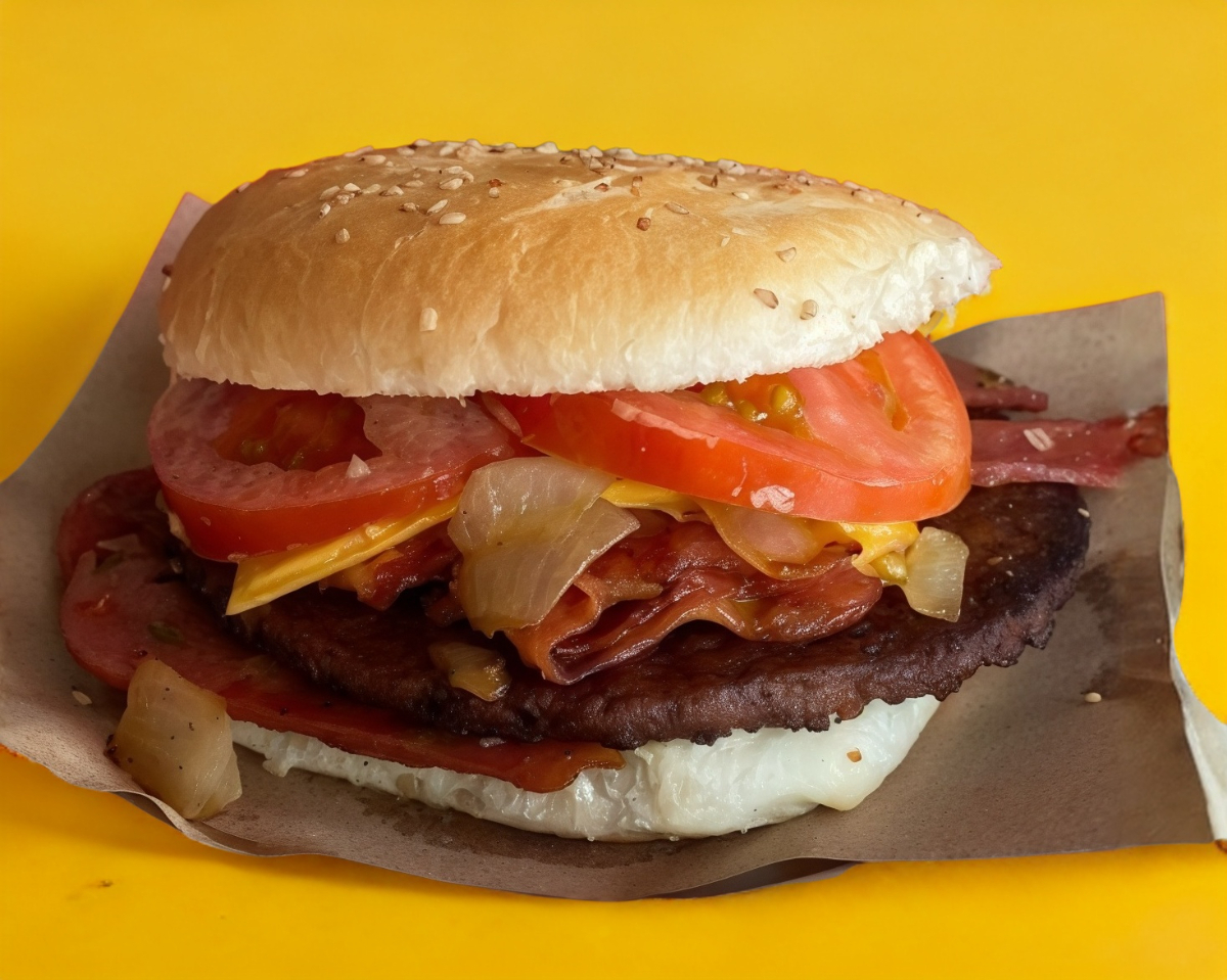 carne de hamburguesa de res,queso americano,queso manchego,jamon,cebolla, tomate, salsa catsup y aderezo.