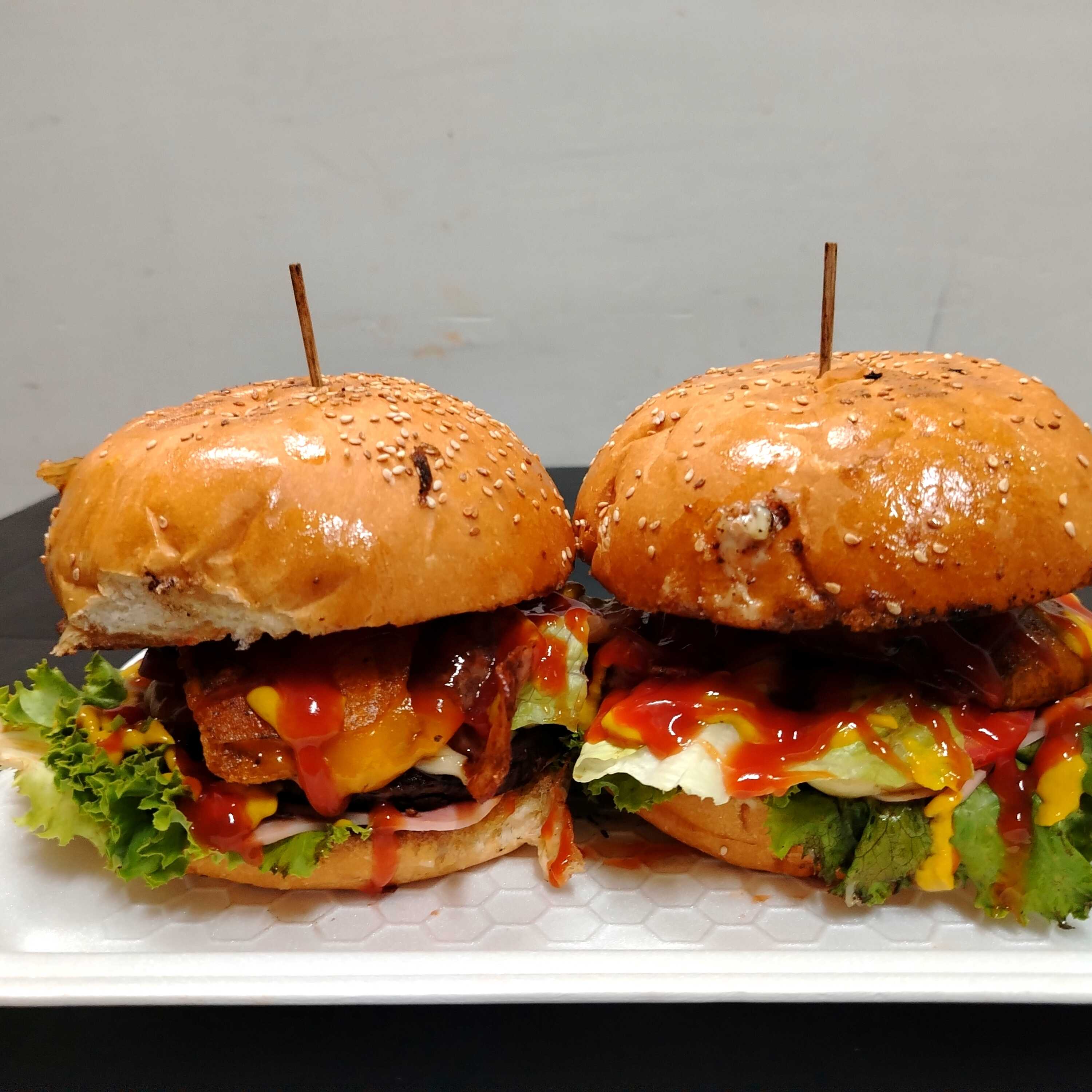 Hamburguesa elaborada con un medallón de Cerdo fresco, sellado a la plancha, servido en pan artesanal con lechuga, jitomate, cebolla y aderezo especial.