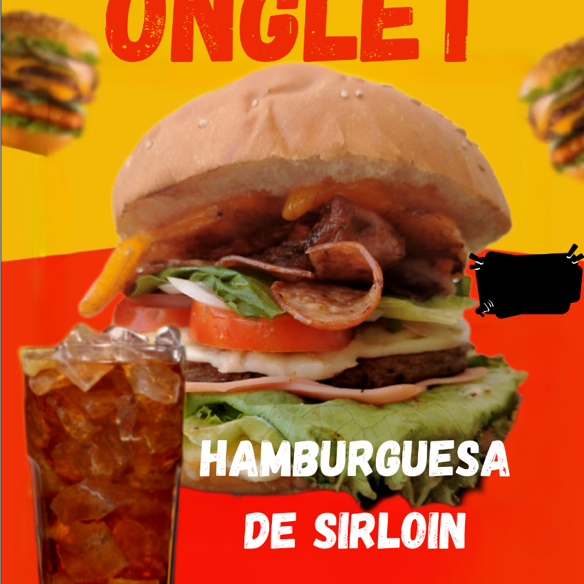 Hamburguesa elaborada con carne de Sirloin (entraña fina),un corte tierno y lleno de sabor. Servida en pan artesanal con queso, vegetales frescos y salsas al gusto.