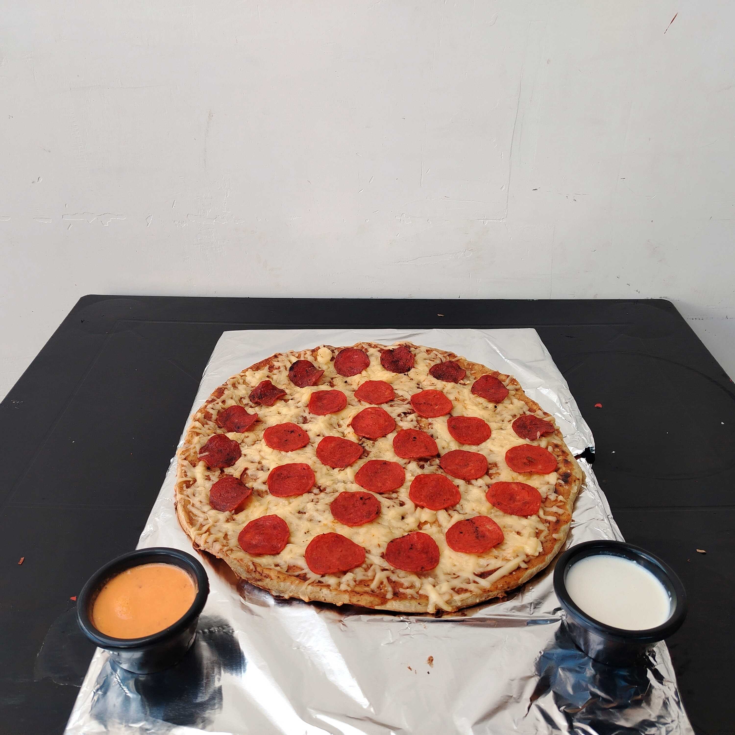 Elaborada con salsa Italiana, queso fundido de alta calidad, peperoni, se acompaña con salsa de tomate y crema xcatic.