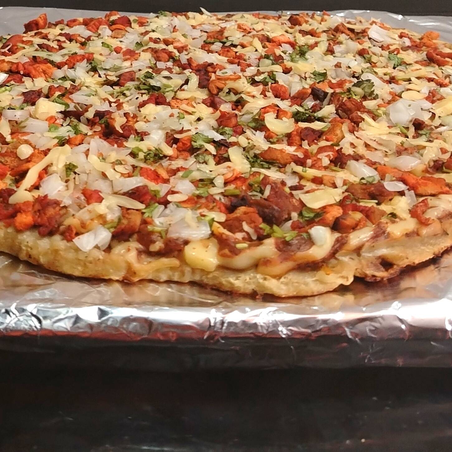 Elaborada con salsa Italiana, queso fundido de alta calidad, carne al pastor, cebolla, cilantro, se acompaña con salsa de tomate, guacamole y crema xcatic.