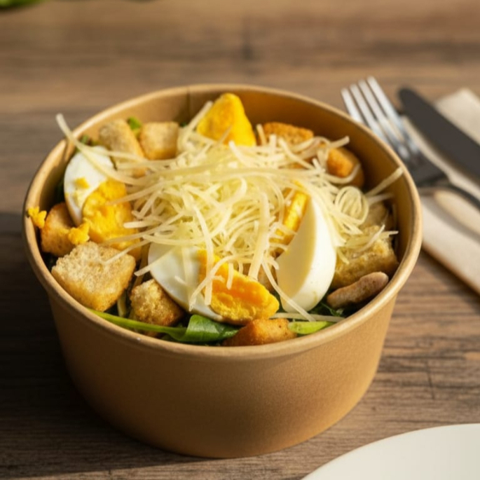 Mix de Lechugas y espinaca, Pechuga a la plancha, Huevo cocido, aguacate, crutones, Queso parmesano.