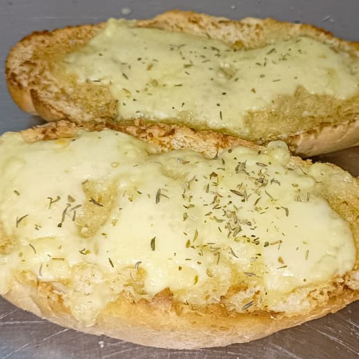 Orden de dos panes con mantequilla de ajo más queso. Acompañado de orégano & salsa inglesa.