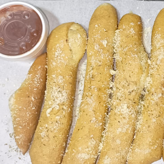 Orden de banderillas de solo pan (no rellenas), bañadas con mantequilla de ajo, polvoreado con queso parmesano y sazonador