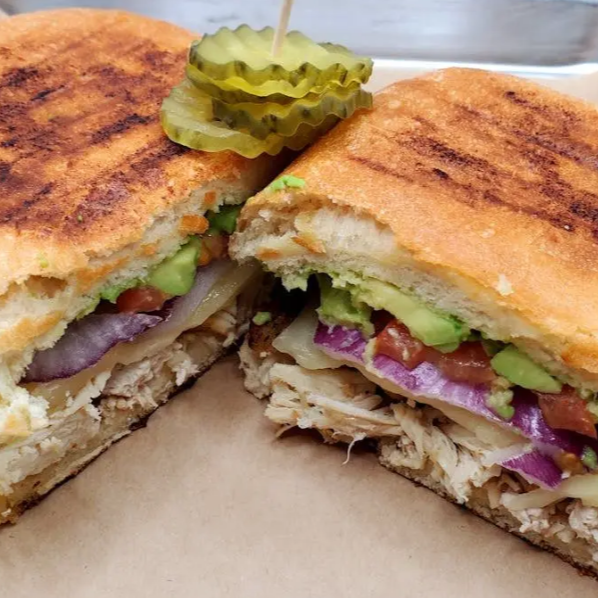 Baguette crujiente rellena de pollo asado jugoso, jamón y queso derretido. Calientita, sabrosa y perfecta para quitar el antojo.
