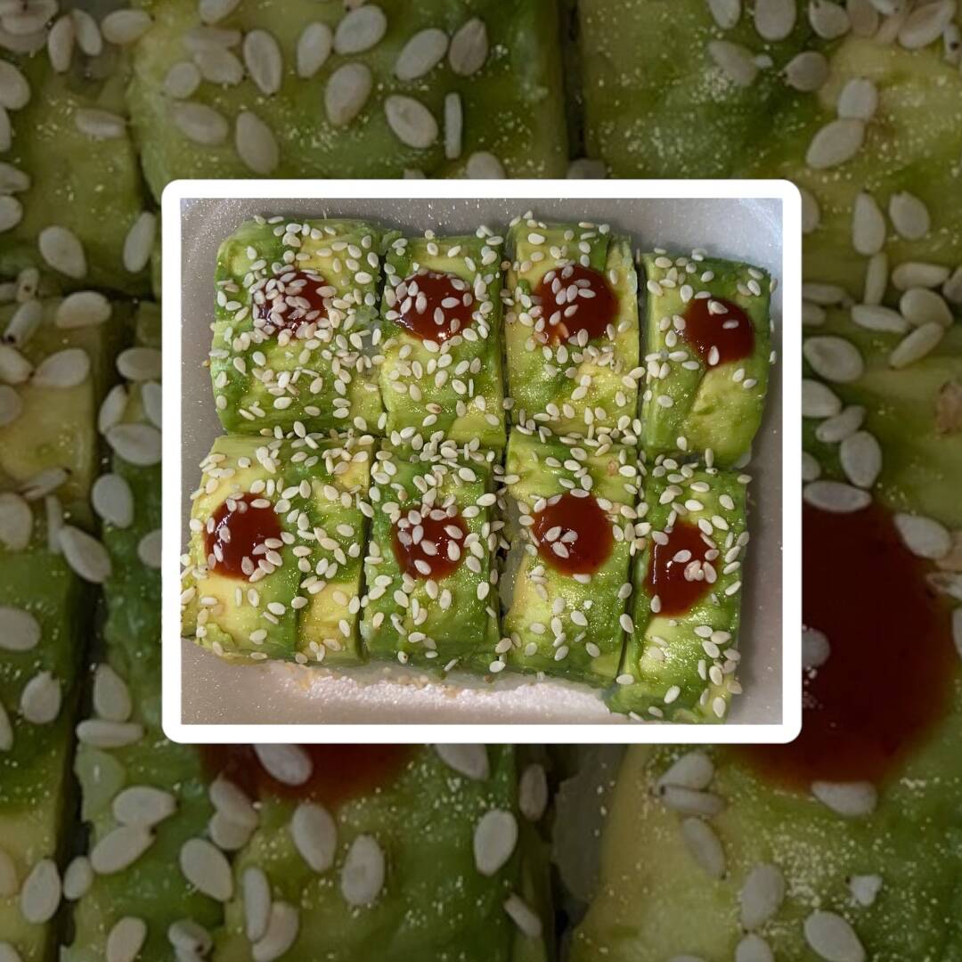 Por dentro con camarón o pollo, aguacate, queso y pepino 🥒 Por fuera ajonjolí blanco