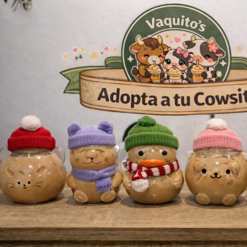 Adopta a tu nuevo compañero, tu vaso cowsitos con bebida sin café, ideal para un momento de energía y sabor, se entrega con certificado, accesorio y tu bebida de preferencia, ¡Coleccionalos todos!