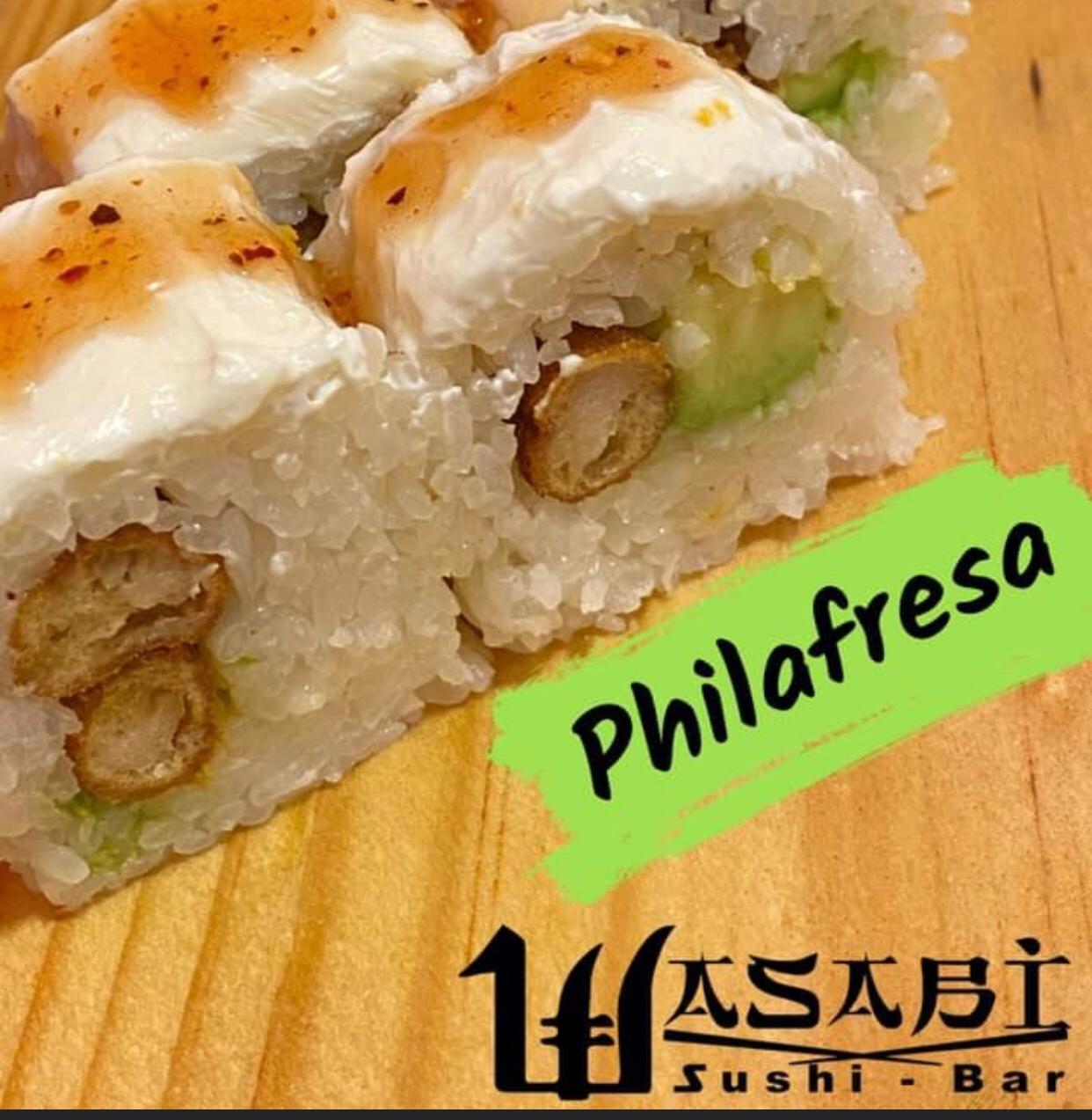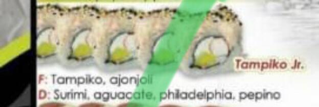 Por fuera tampico chipotle. Por dentro aguacate, zanahoria, pepino y philadelphia.