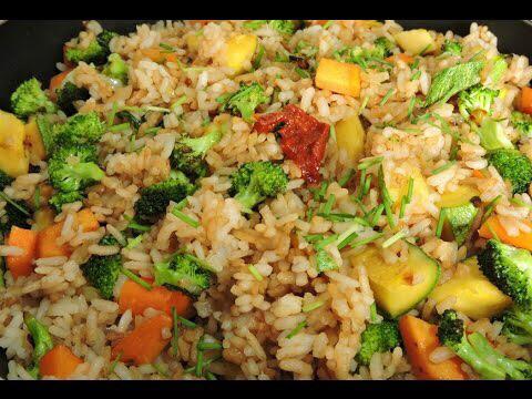 Arroz frito con verduras vegetariano.