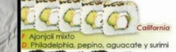 Por fuera camarón y philadelphia. Por aguacate y pepino.