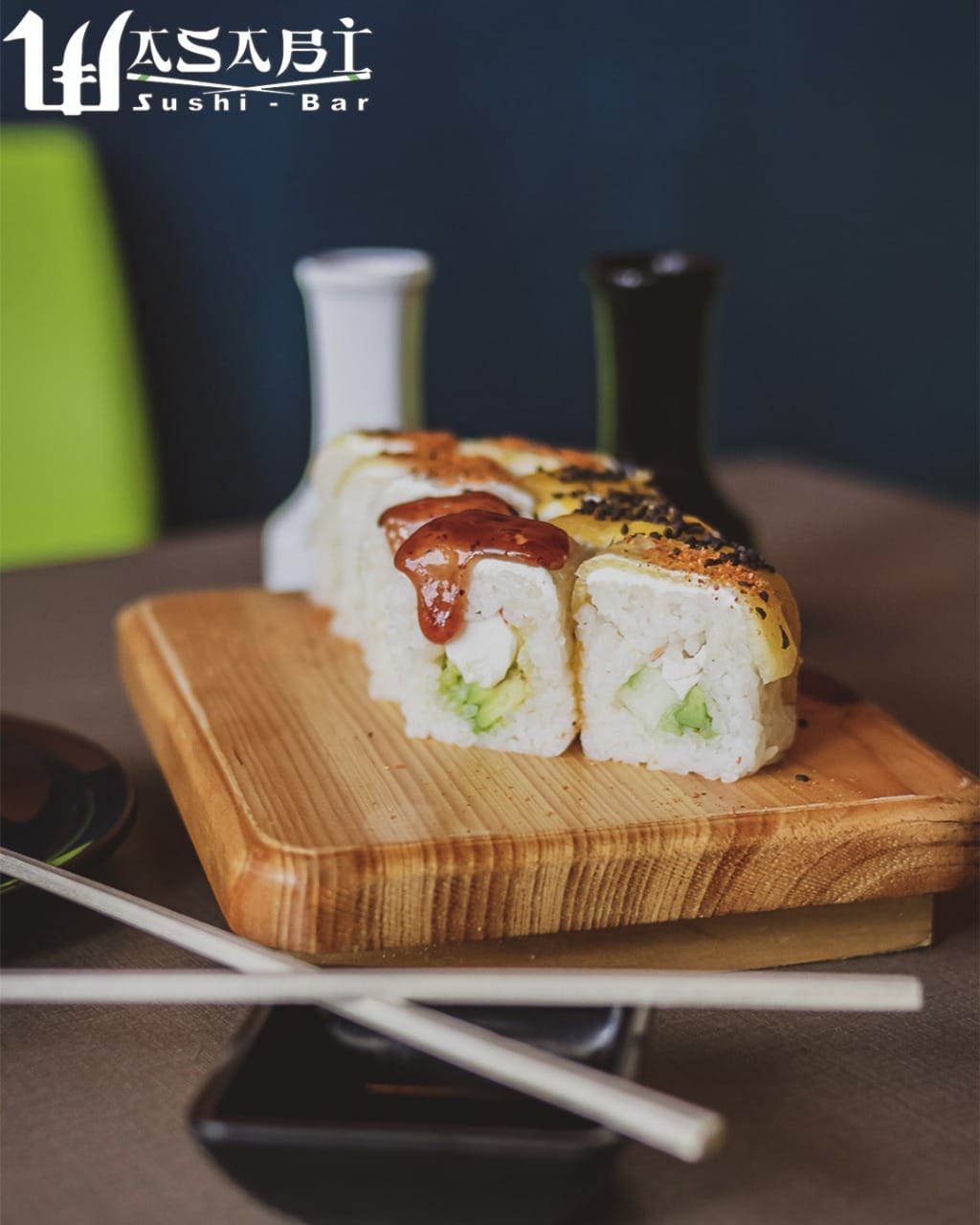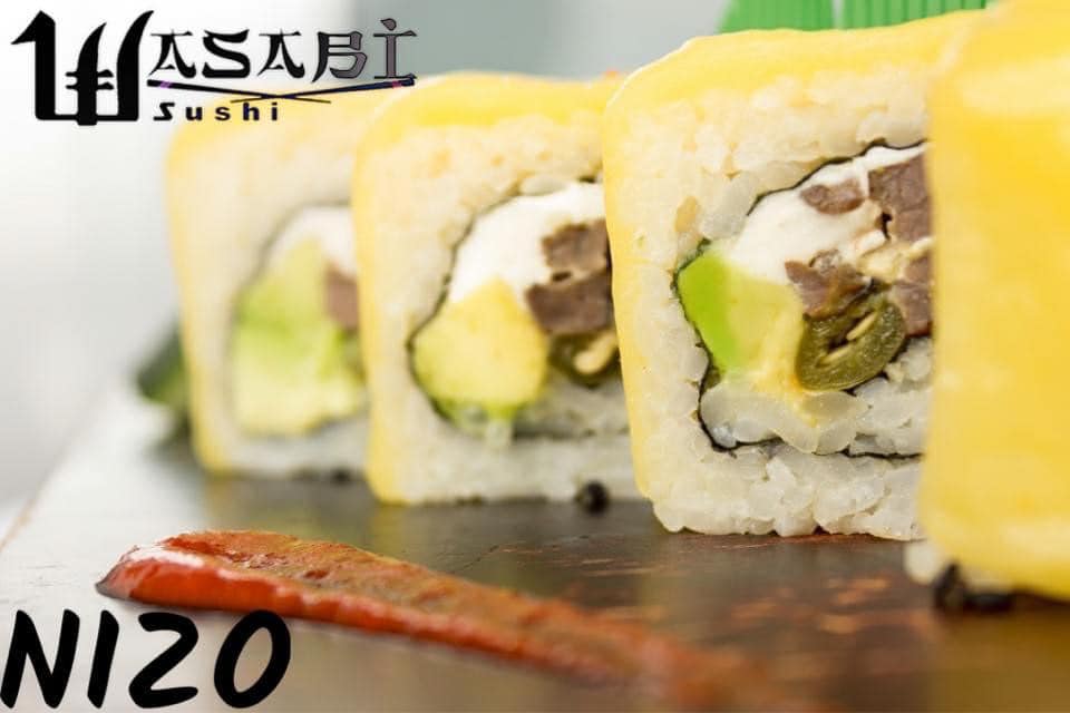 Por fuera salsa chipotle. Por dentro aguacate, queso gouda y Philadelphia.