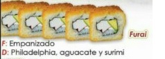 Por fuera capeado tempura. Por dentro surimi, aguacate y Philadelphia.