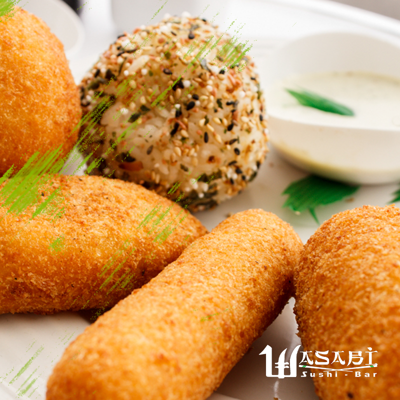 Por fuera empanizado y salsa de chipotle. Por dentro aguacate, queso gouda y Philadelphia. Frutas y vegetales de temporada.