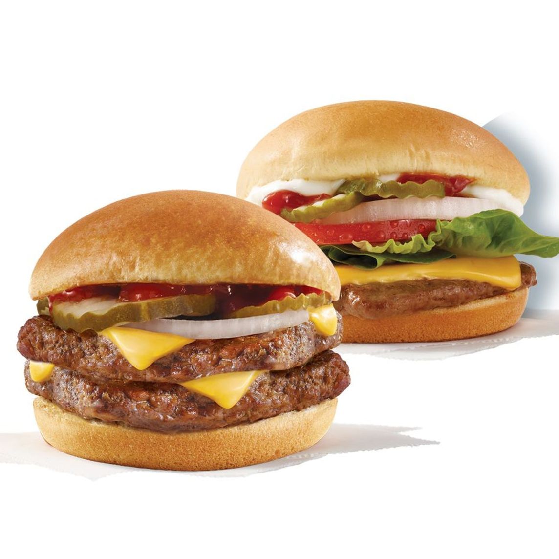 Un cuarto de libra de carne de res fresca, queso americano, lechuga fresca, tomate, pepinillos encurtidos, cátsup, mayonesa y cebolla en un pan brioche tostado, exactamente de la forma en que lo diseñó Dave.