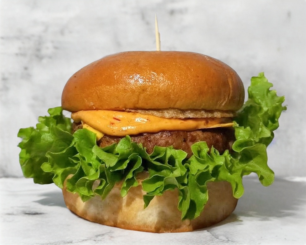 Pan artesanal, carne casera de 160 gramos, lechuga italiana, tocino, queso americano, champiñones, queso philadelphia, salsa chipotle (Picosita), salsa, ajo, mayonesa.