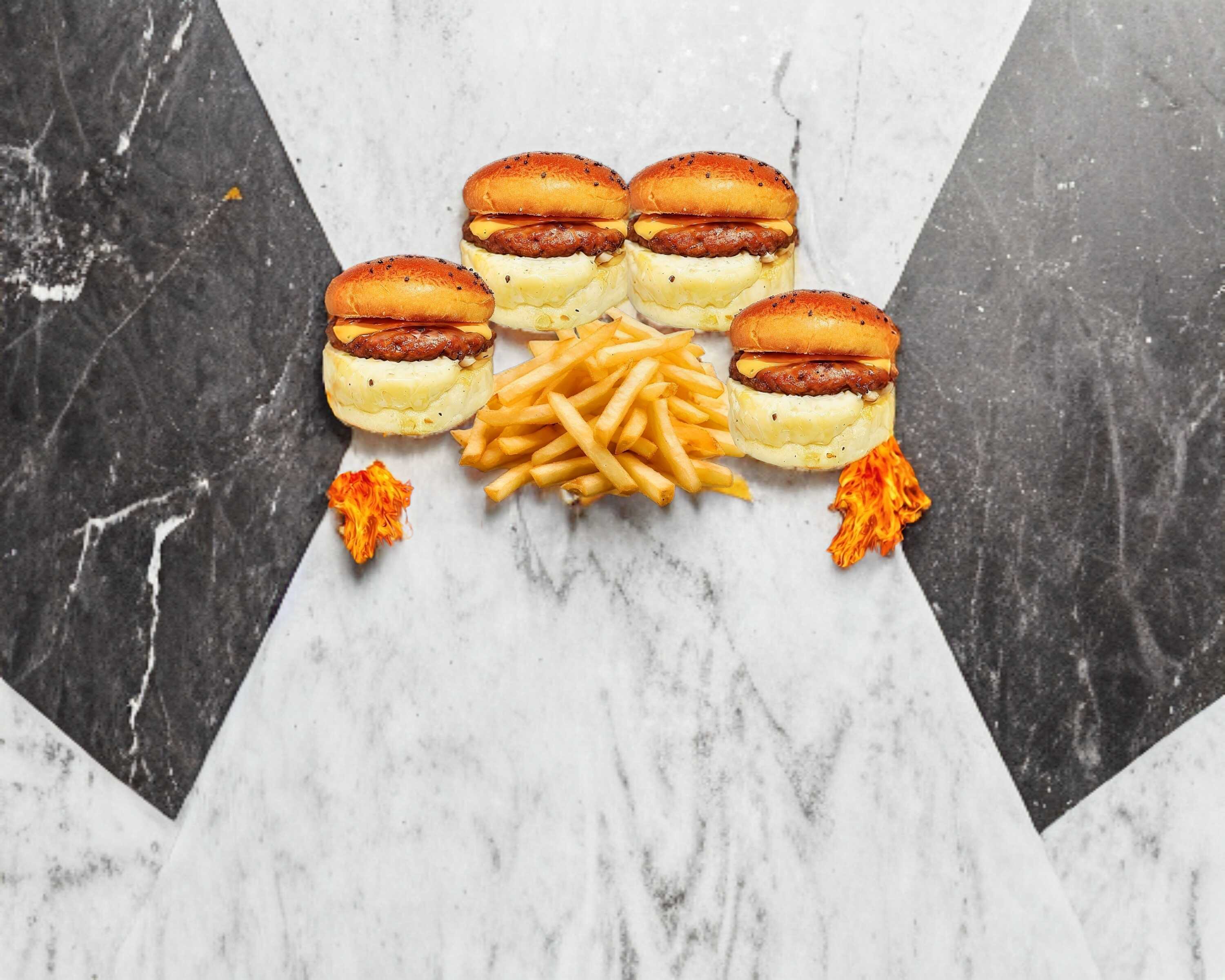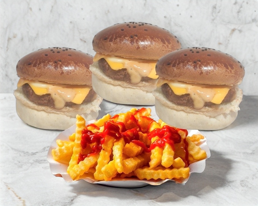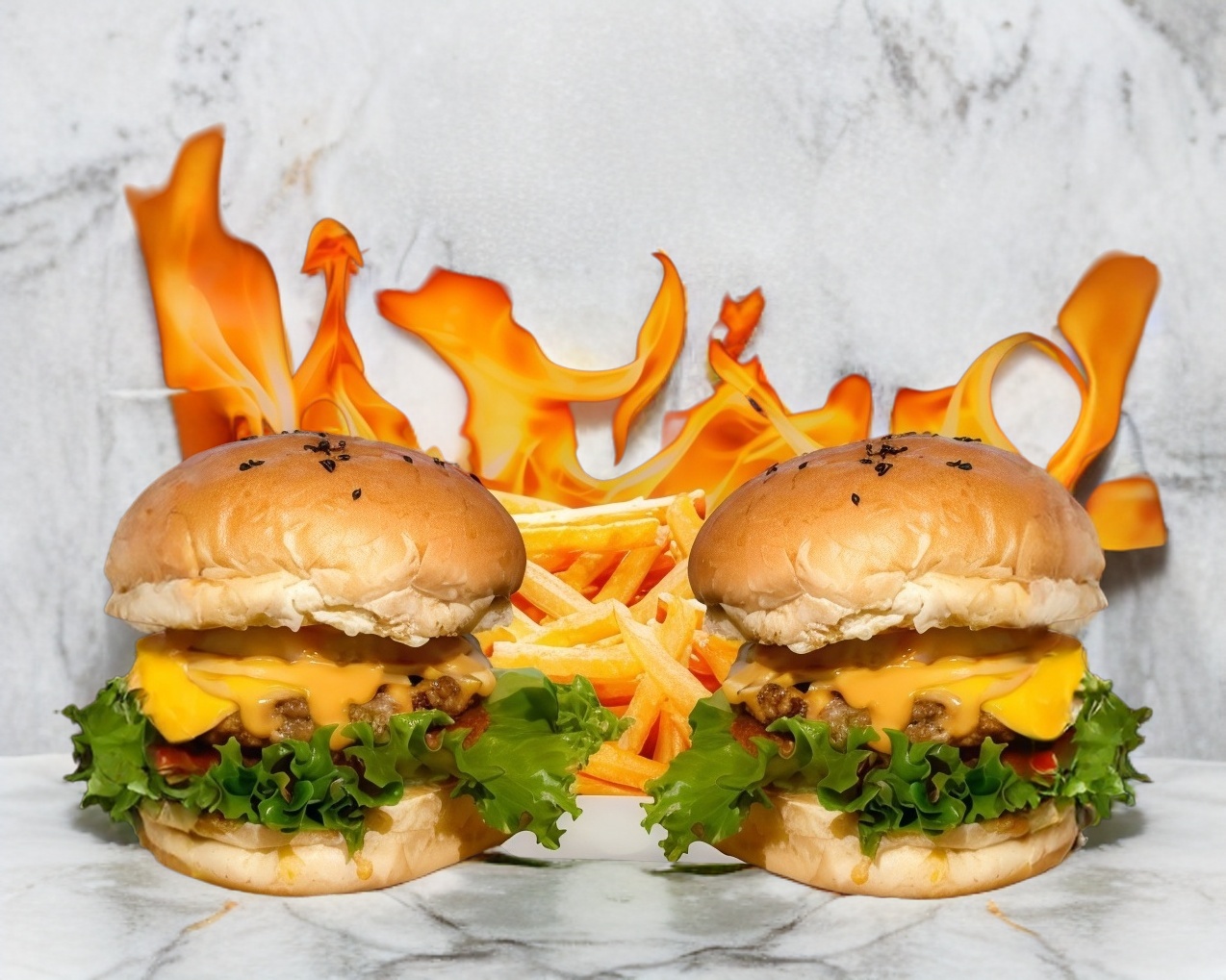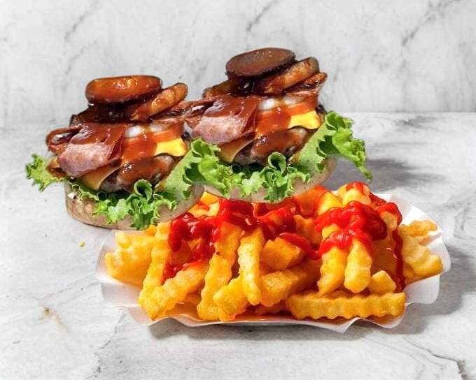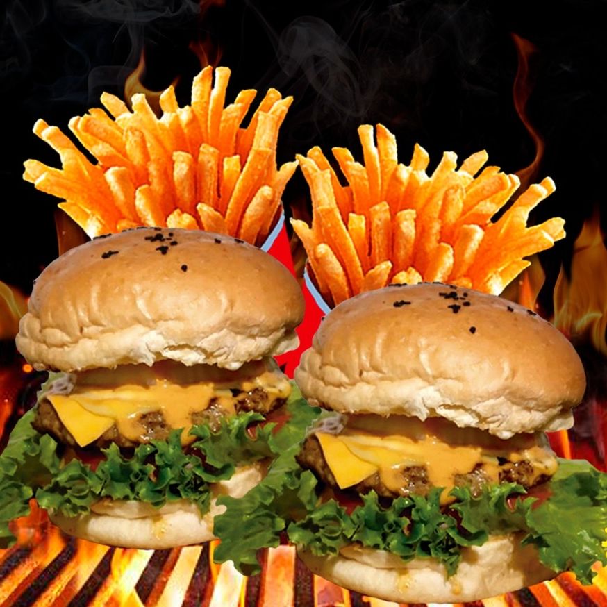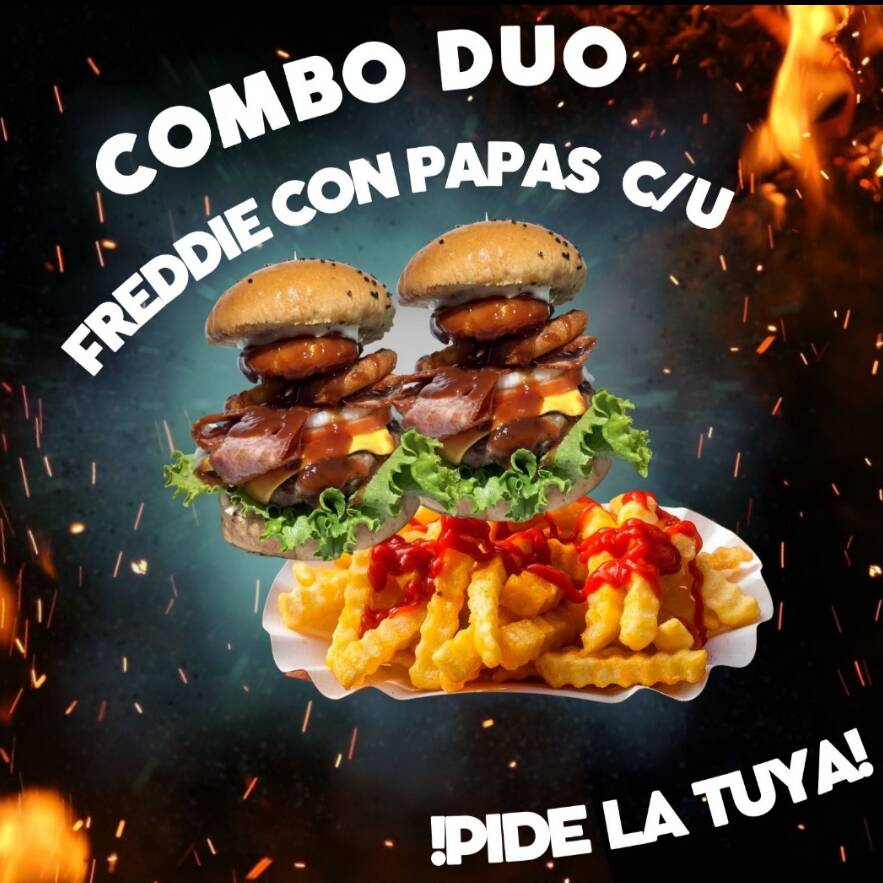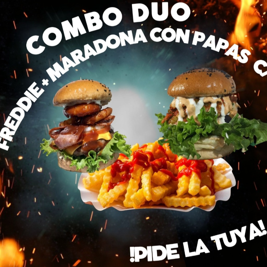 Papas a la francesa 150 gr*2 + Maradona Burger 2*1 + Freddie Mercury 2*1