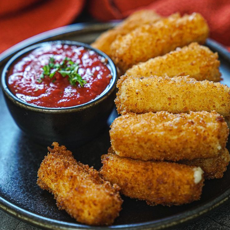 Dedos crujientes de queso mozzarella, suaves y cremosos al interior, acompañados con nuestra deliciosa salsa italiana (6 pzas)