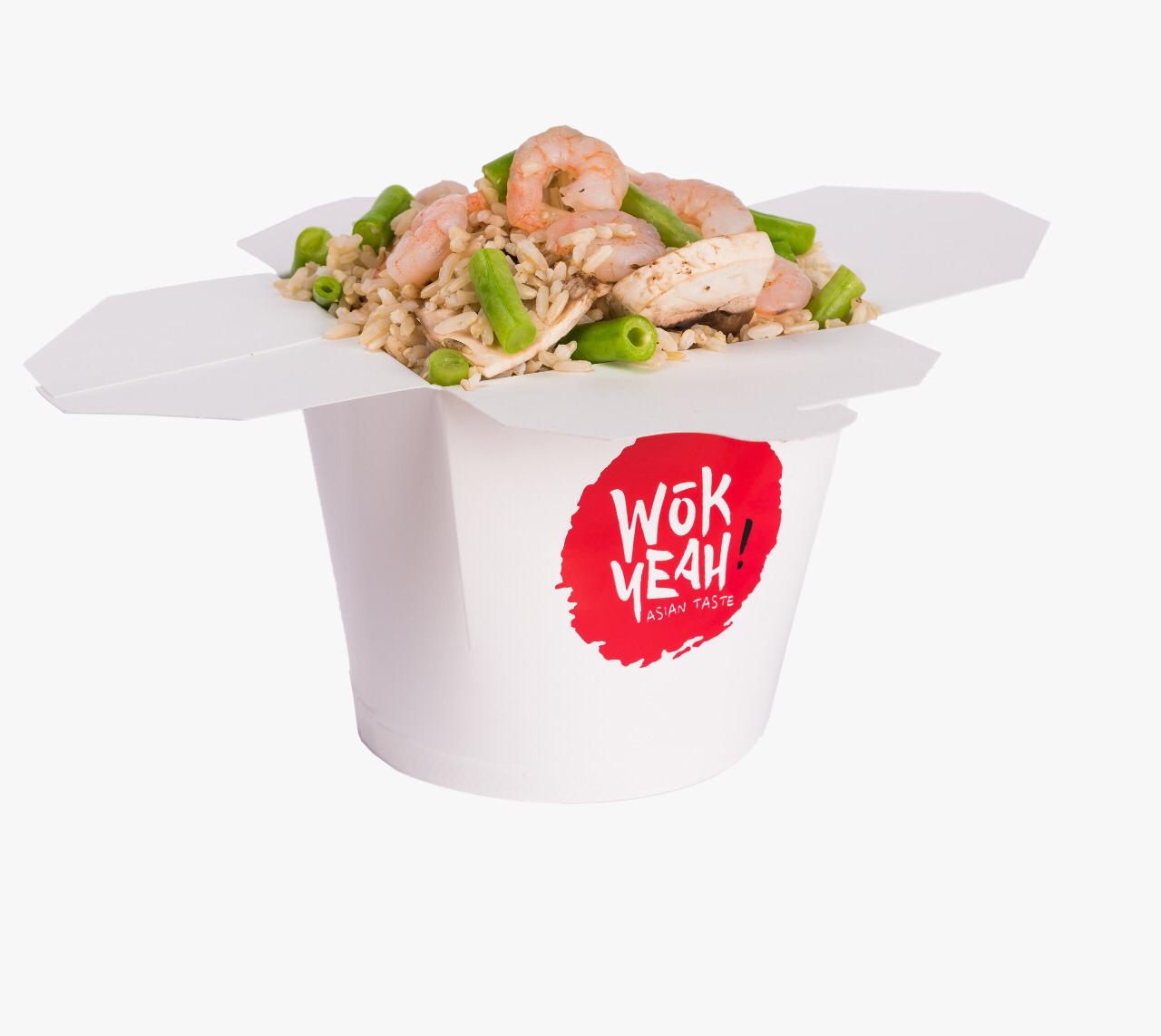 ARROZ INTEGRAL, CAMARON, CACAHUATE, EJOTE, CHAMPIÑONES, ACEITE DE OLIVA Y SALSA HENKI