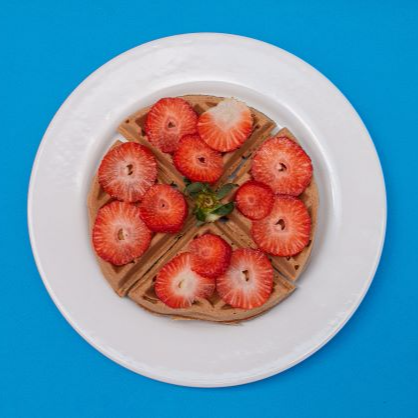 Waffle con Rodajas de Fresa y Leche Condensada
