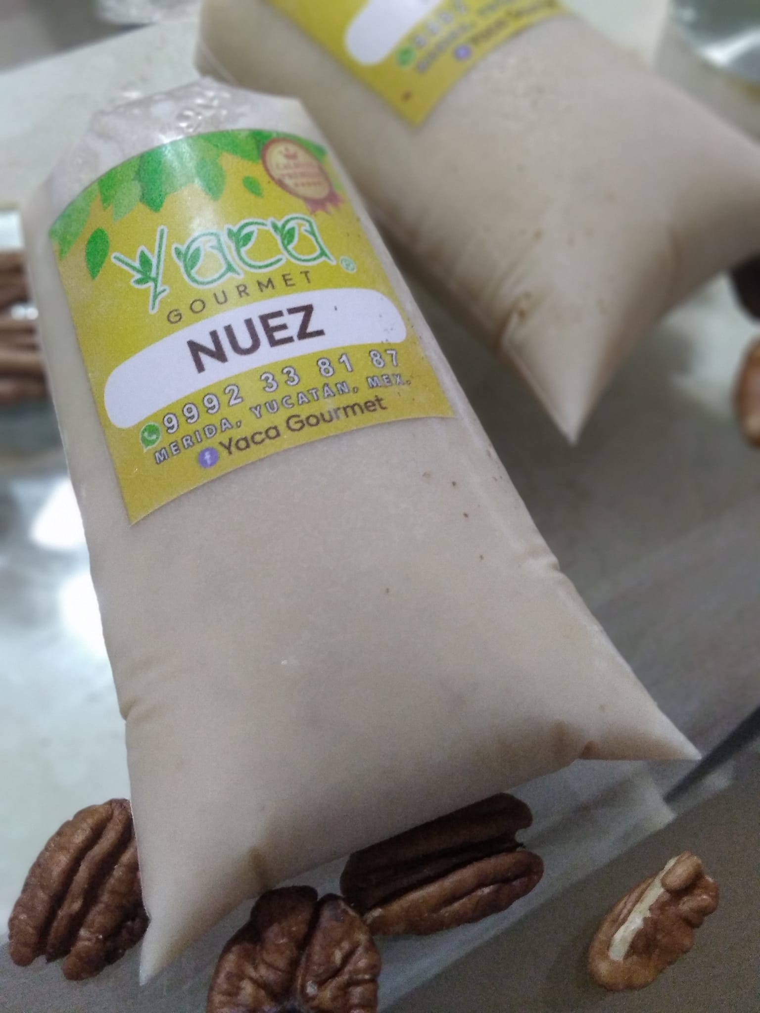 a base de leche entera y trozos de nuez