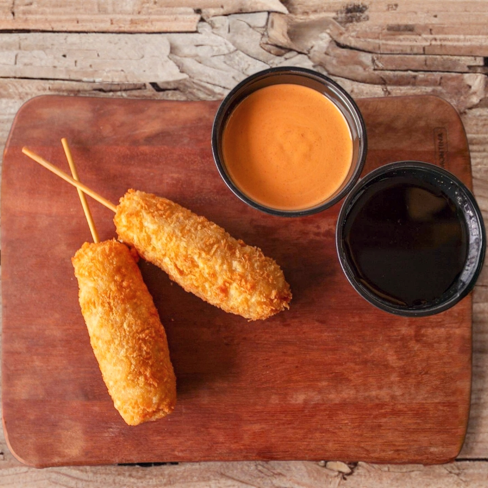 2 Piezas de brochetas empanizadas, relleno a elegir.