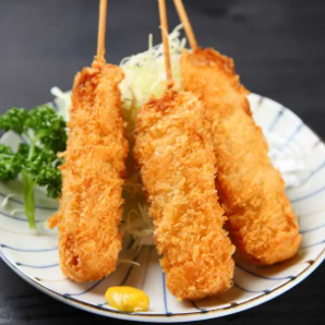Relleno de camarón cocido, aguacate y Philadelphia. Empanizado por fuera con salsa de tampico.