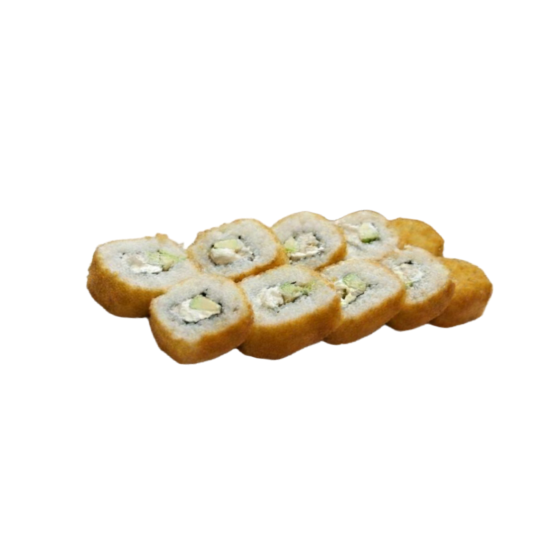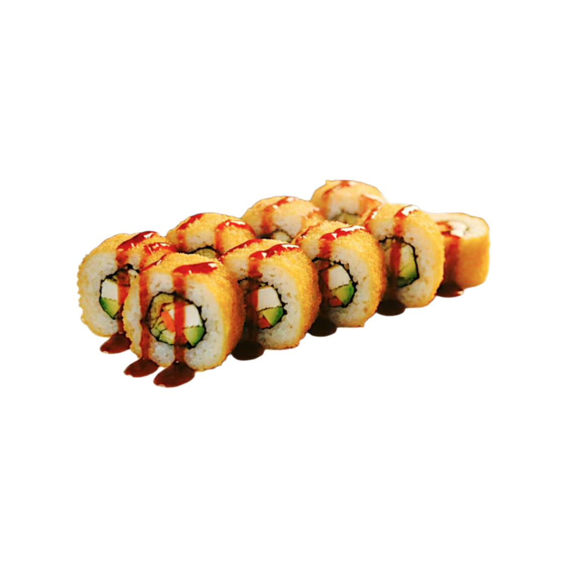 Rollo de sushi frito en formato sándwich, relleno de aguacate, Philadelphia y pollo. Acompañado de salsa spicy.