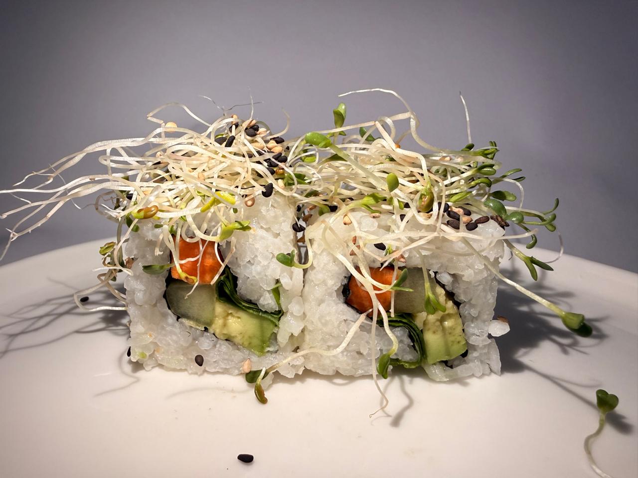 Zanahoria, pepino, aguacate, espinaca y Philadelphia, por fuera ajonjolí mixto.