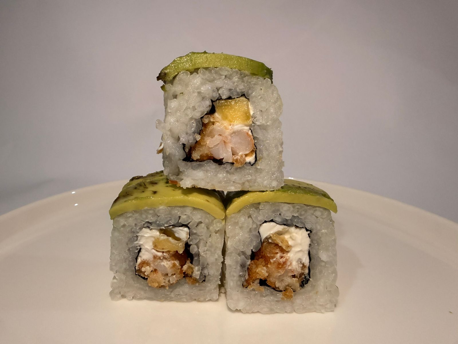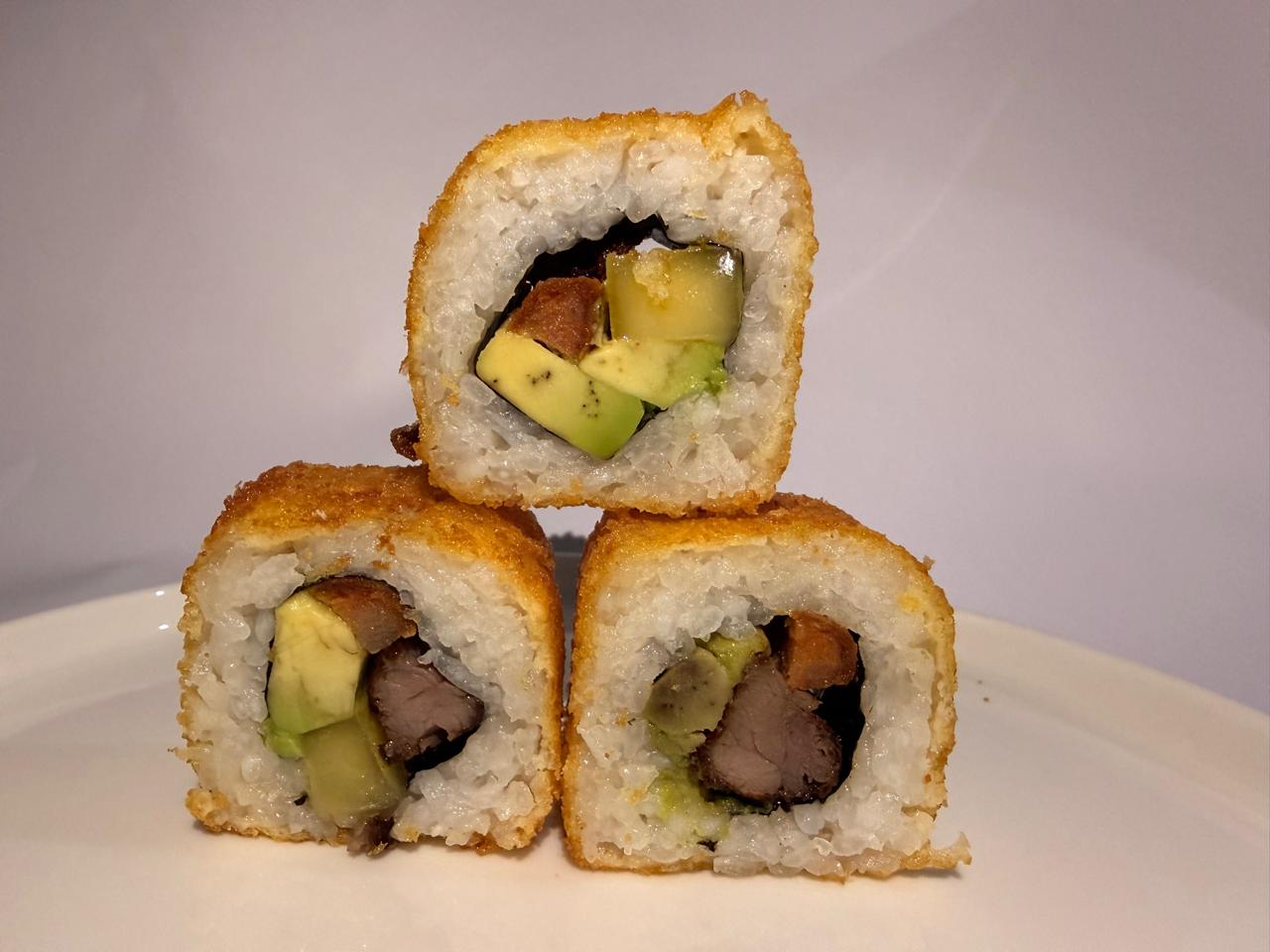 Surimi, aguacate y Philadelphia, por fuera empanizado.