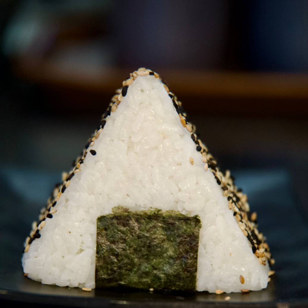 Delicada bolita de arroz cubierta con ajonjolí y nori, rellena de pollo dulce, suave por dentro y llena de sabor en cada bocado.