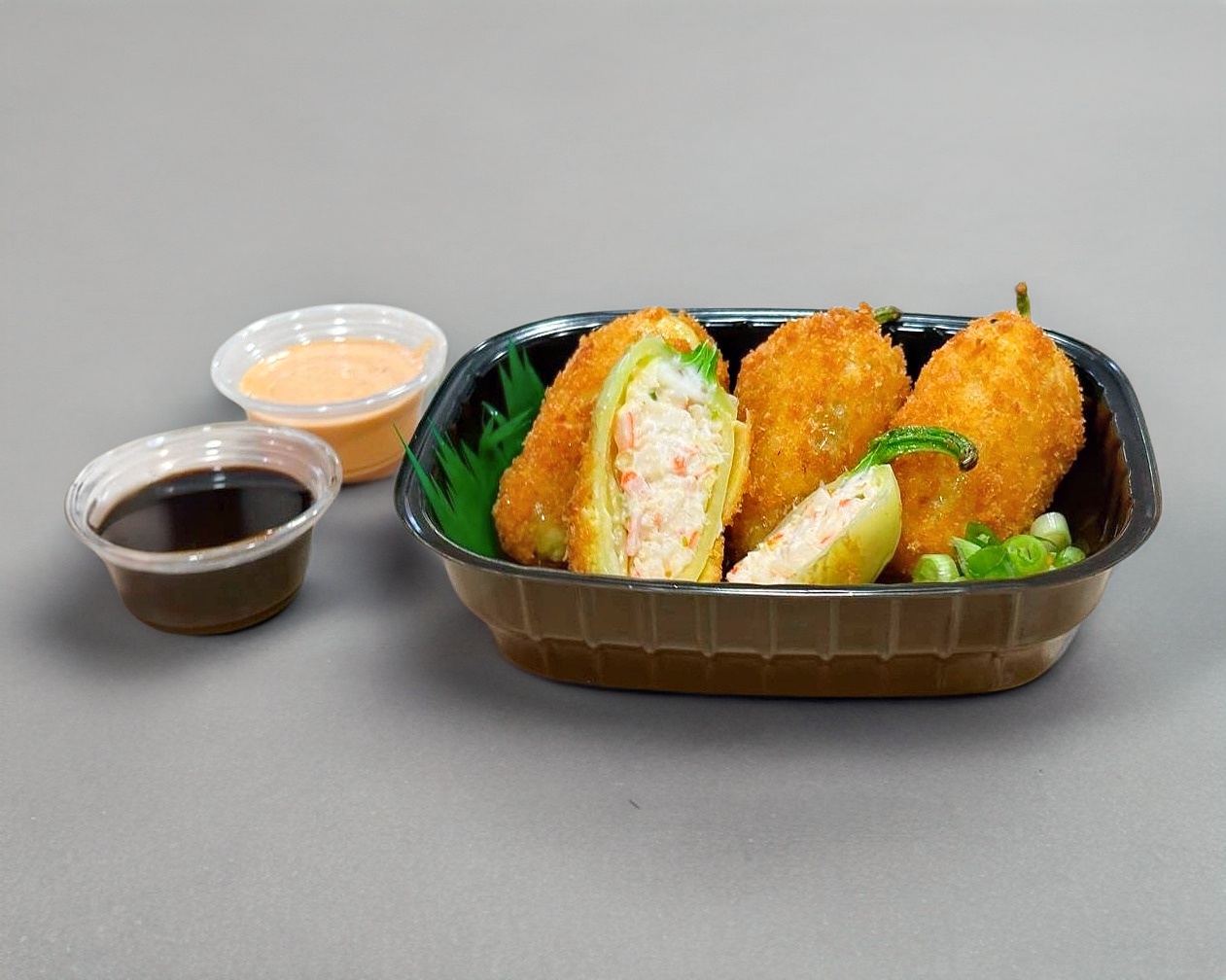 Riquisimos Chili Poppers empanizados, rellenos de surimi. Perfectos para acompañar cualquier platillo
