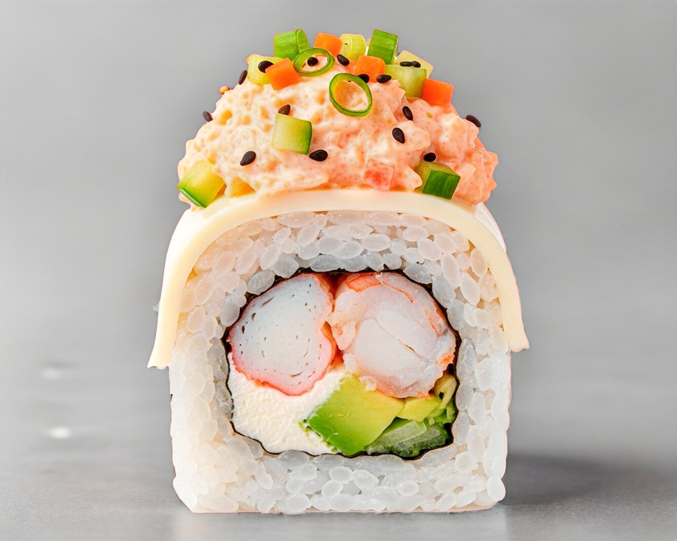 Déjate conquistar por este rollo exquisito: camarón, cangrejo, queso crema y aguacate perfectamente combinados. Envuelto en una seductora capa extra de queso crema y coronado con un sabroso topping de tampico. ¡Una experiencia suave, rica y memorable!