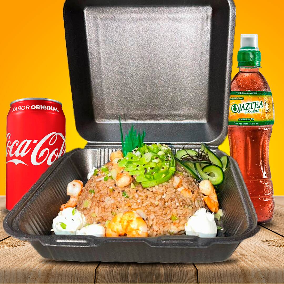 Una erupción de sabor directo a tu antojo: arroz frito al estilo japonés, pollo jugoso, bolitas de surimi, cremoso aguacate y un toque fresco de cebollín. Todo mezclado en una combinación irresistible que llega acompañado de nuestros aderezos especiales.