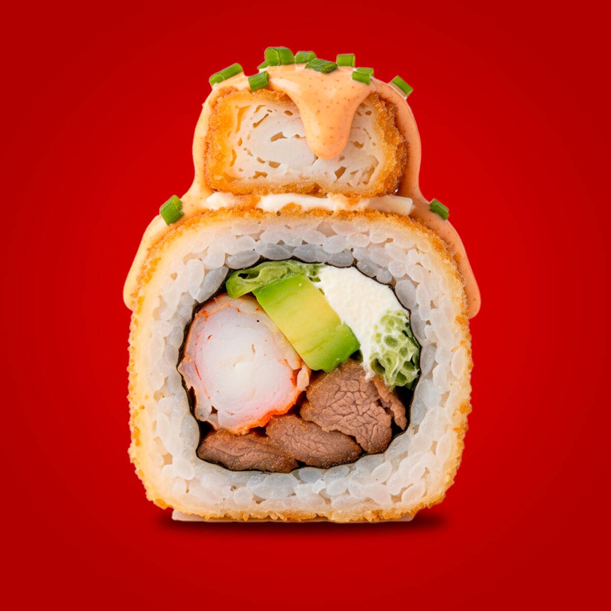 Crujiente por fuera, explosivo por dentro. Nuestro rollo empanizado combina res jugosa y camarón fresco con pepino, aguacate y queso crema, gratinado y coronado con tocino y chile serrano. Cada bocado es un espectáculo de sabor y textura que no podrás resistir.