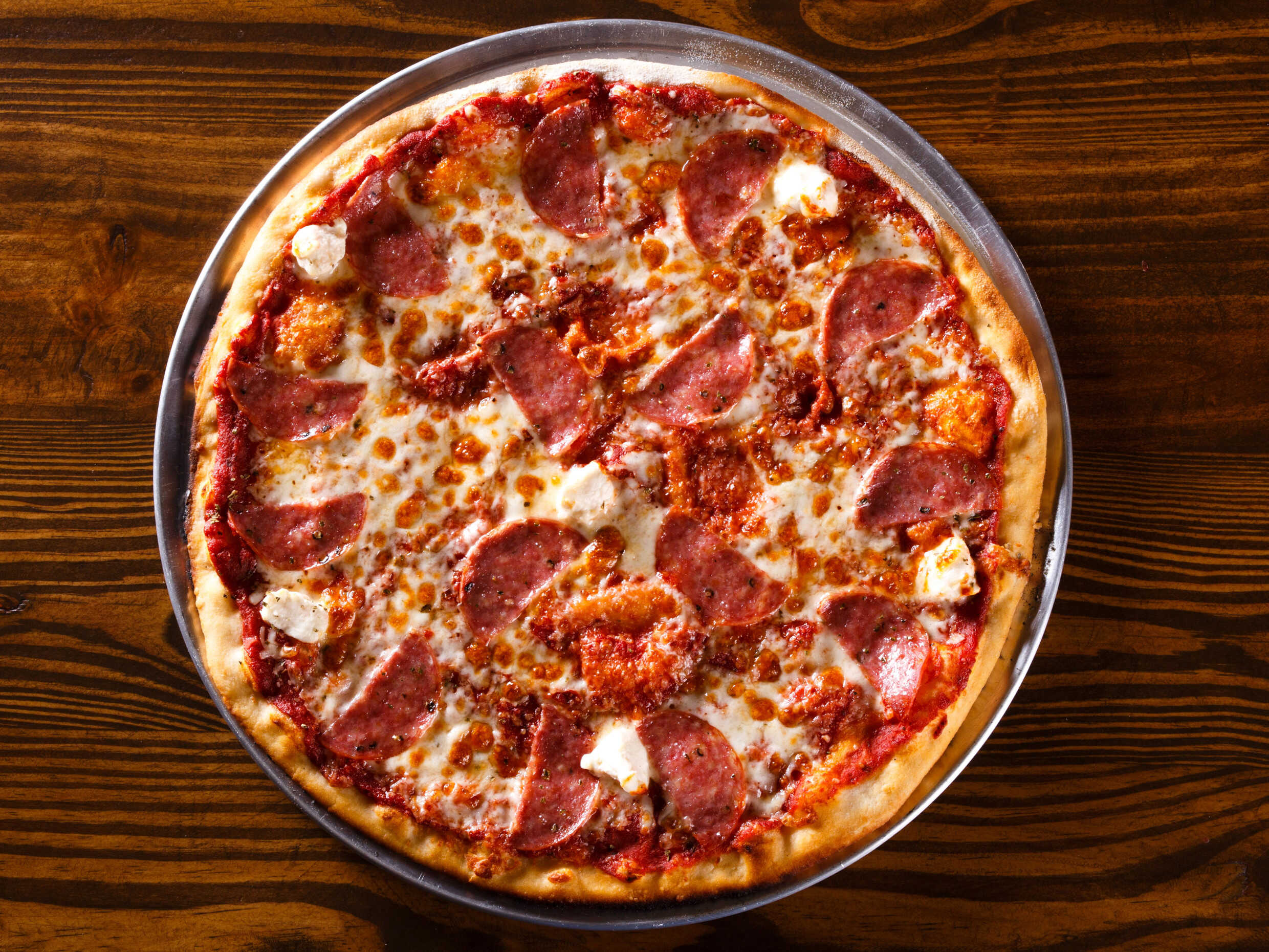 Elige el tamaño. Salsa de tomate, queso mozzarella, salami, aceituna negra y orégano.