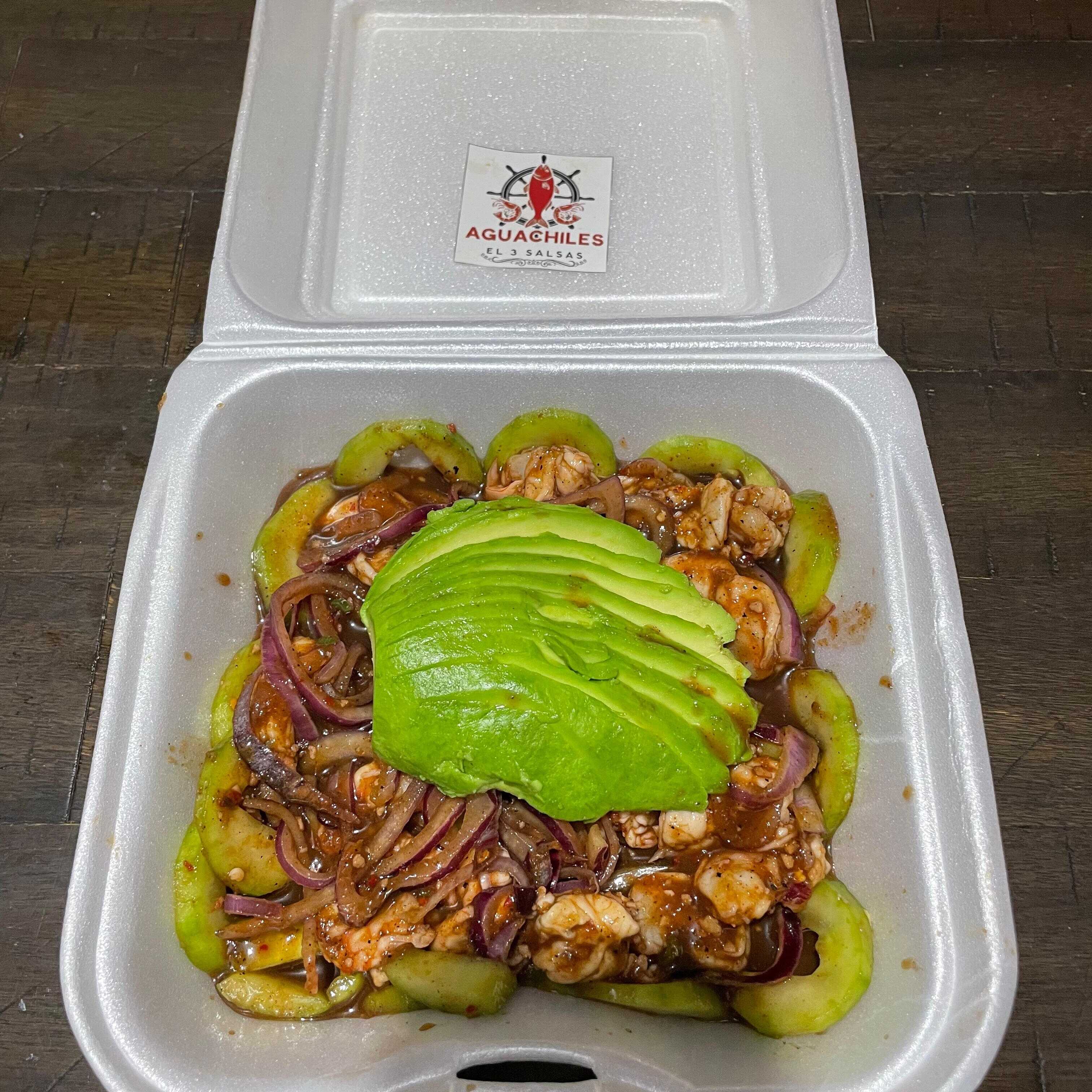 Ricos aguachiles en salsa negra,echa principalmente de chile habanero y cerrano