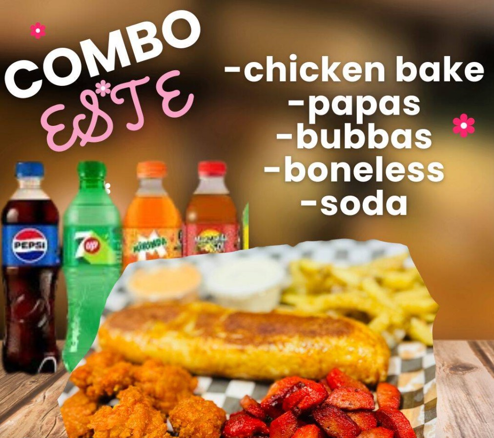 1 Chicken Bake + Papas + Bubbas + Boneless + Soda Pepsi