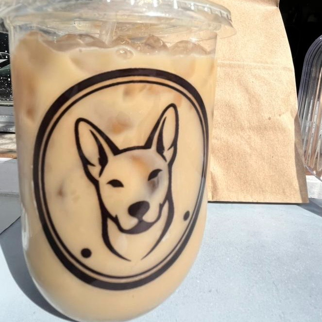 Leche deslactosada, cafe,, jarabe de vainilla