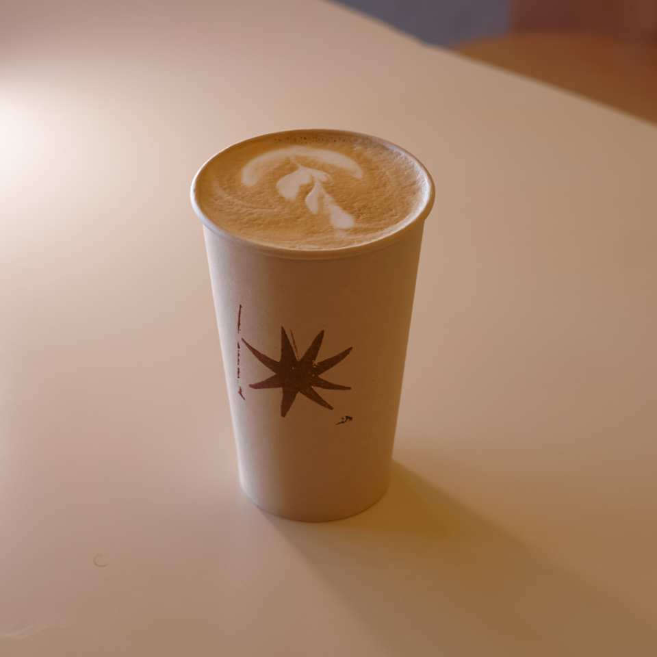 Dos shots de espresso endulzados con maple y una pizca de sal rosa, servidos con leche deslactosada caliente y perfectamente cremada.