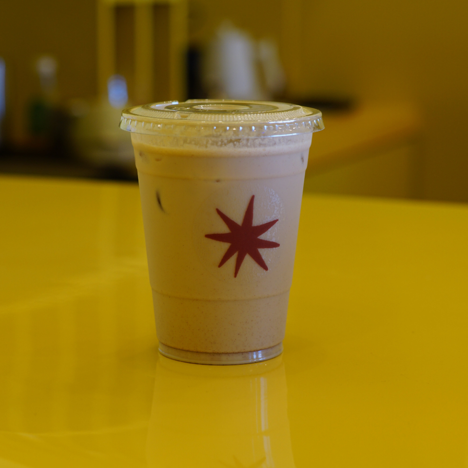 Matcha de grado ceremonial endulzado con miel de agave, servido con leche fría de tu elección y jarabe de coco. Cremoso y tropical.