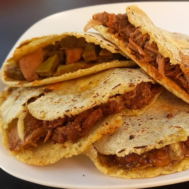 Gordita de maíz rellena con tu guisado favorito y queso monterrey.
