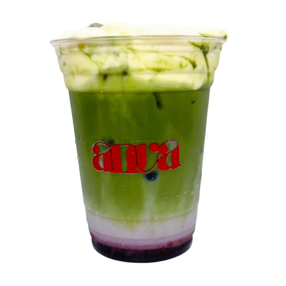Matcha, leche, hielos, vaso 16 oz (sin endulzar)